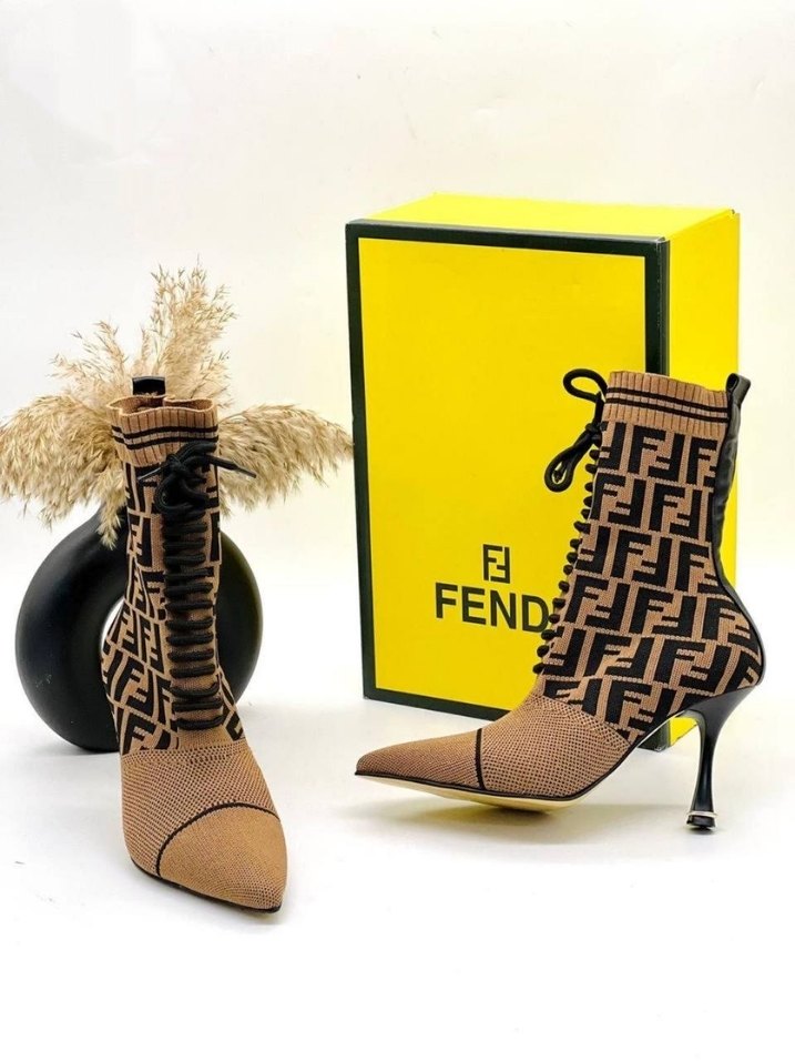 Fendi Örgü Desenli Stiletto Topuklu Kahverengi Bot