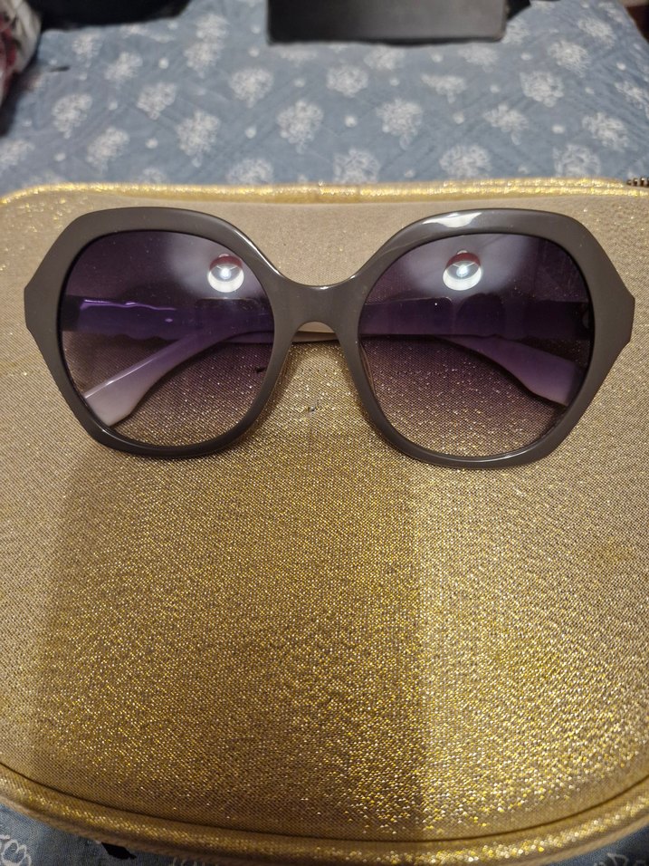 Kadınlar için şeffaf gri çerçeveli, kahverengi degrade camlı, çağdaş tasarımlı güneş gözlüğü. Bohem ve retro tarzları yansıtır.