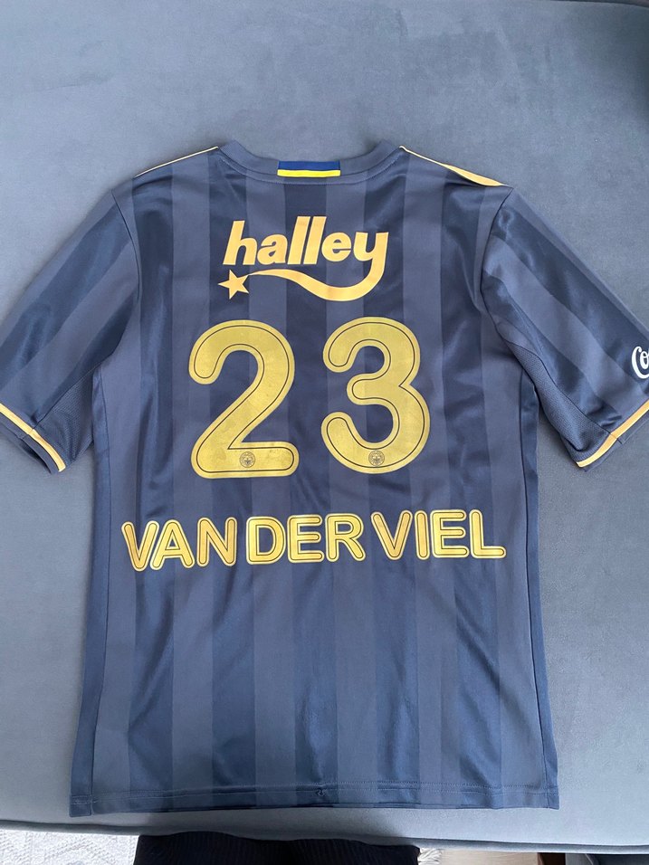 Orijinal Adidas Climacool serisi, Fenerbahçe’nin 110. yılına özel üretilmiş koleksiyonluk gri forma. Arkasında Van der Wiel’in 23 numarası ve ismi, ön yüzünde ise futbolcunun kendi imzası bulunmaktadır. Unisex