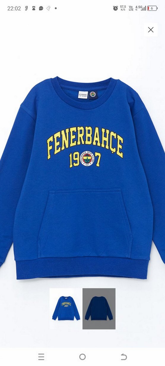 Mavi, yuvarlak yakalı ve uzun kollu sweatshirt. Renkli Fenerbahçe 1907 baskı ve kürk detaylı. Bol kesim, sokak stili, yumuşak ve sıcak kumaştan.
