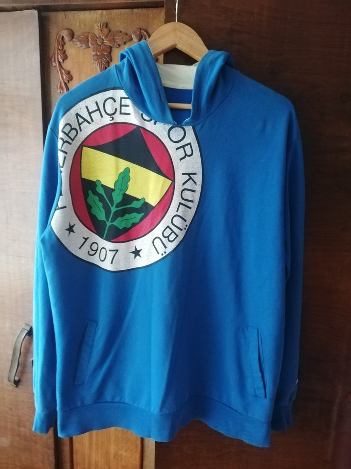 açıklamalar fotoğraflardadır Mavi renk, bol kesim, uzun kollu, yuvarlak yaka erkek sweatshirt. Fenerbahçe baskısı ve düğme detayları bulunur. Yumuşak ve sıcak kumaştan üretilmiştir. 1907 orijinal Fenerium ürünü baskılı.