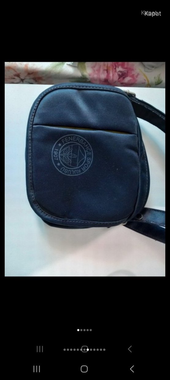 Koyu mavi renkli, baskılı Fenerbahçe logosu ve tokalı kayışı olan erkek omuz çantası, trend sokak tarzına uygundur.
