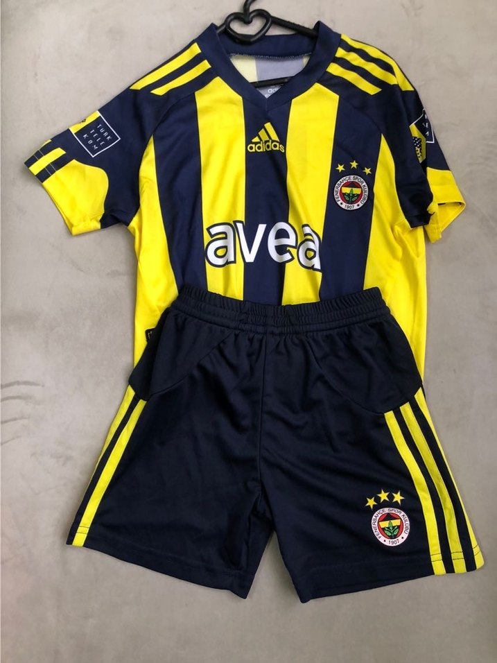 Fenerbahçe forması, kısa kollu, fitted kesim, yuvarlak yaka ve cırt cırt detaylı. Yumuşak ve sıcak kumaştan, sarı-lacivert baskılı desene sahip. Orjinal ürün, sorunsuzdur. 3 yıldızlı Çubuklu forma