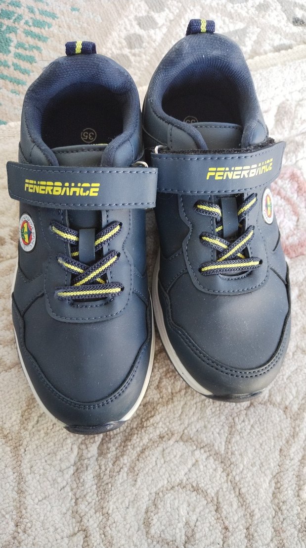 lacivert renkli, renkli baskılı detaylara sahip erkek çocuk sneaker'ı, yumuşak ve sıcak kumaş iç yüzey ve cırt cırtlı kapanış ile. 'FENERBAHÇE' logosu bantlarda yer alır. yeni kullanilmadi orjinal ürün