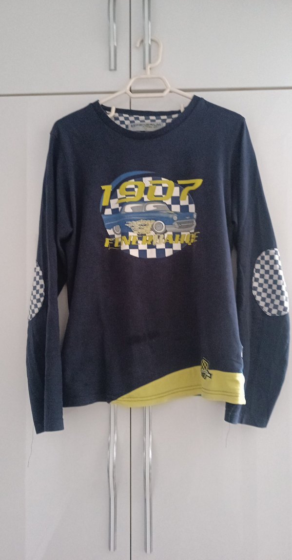 uzun kollu, bisiklet yaka, geniş kesim sweatshirt. Baskılı, düğmeli ve yumuşak, sıcak kumaştan üretilmiştir. Koyu mavi renkte, kareli dirsek detaylı.