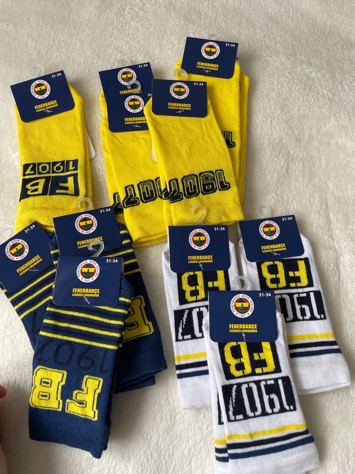 Fenerbahçe marka, kısa ve sıkı oturan erkek çorapları; sarı, lacivert ve beyaz renklerde, baskılı desenli, athleisure tarzına uygun. 1 çift fiyatdır
