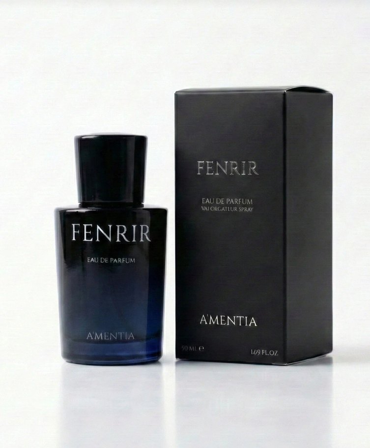 Fenrir Amentia Eau de Parfum, Paris esintili koyu ve gotik erkek parfümüdür, şık siyah şişe ve kutuda sunulmuştur.
