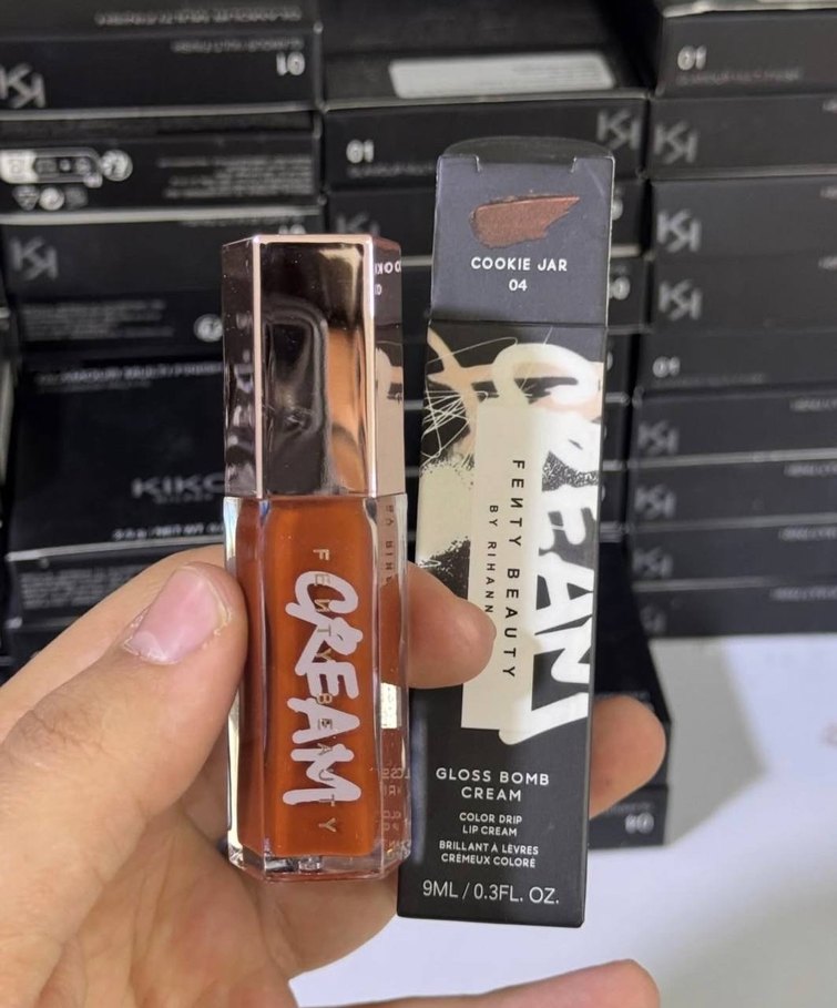 Fenty Beauty Cookie Jar parlak kahverengi lip gloss, kremamsı dokusuyla canlı ve parlak bir görünüm sunar. 9ml hacmindedir.