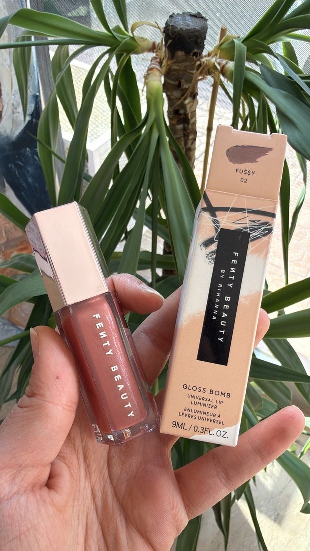 Fenty Beauty Gloss Bomb, pastel bej 'Fussy' rengiyle evrensel dudak aydınlatıcısıdır. 9ml (0.3 fl. oz.) ürün içerir.