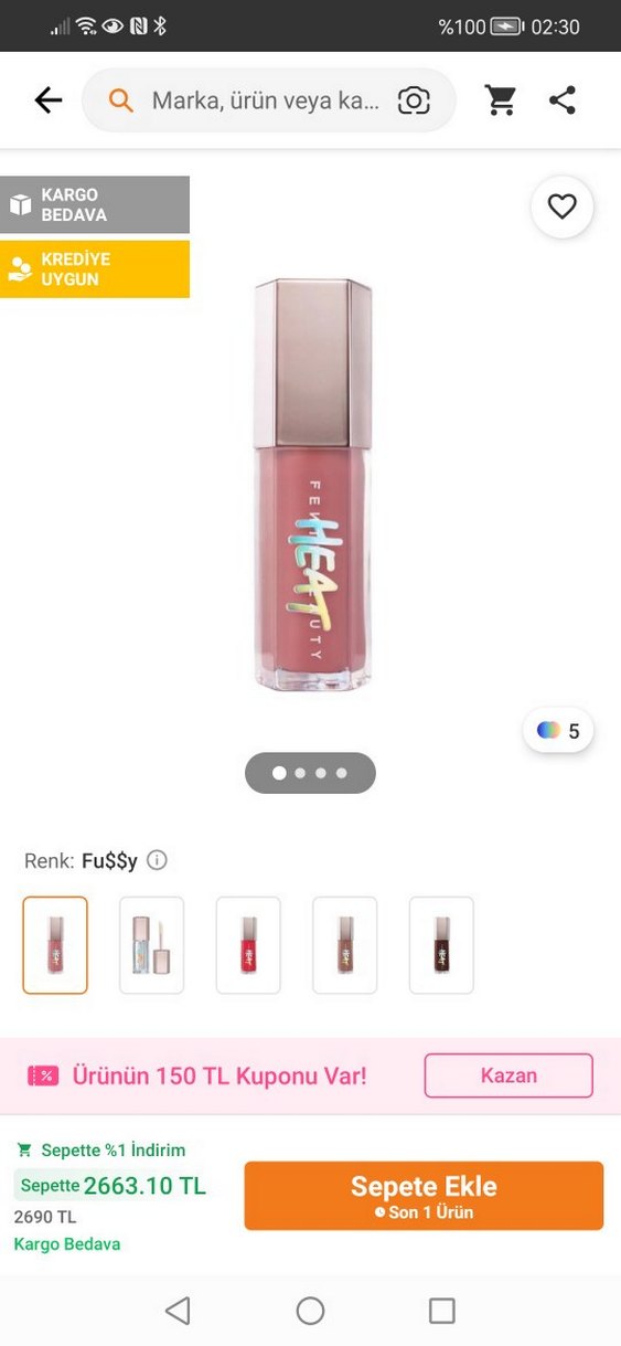 Fenty Beauty Gloss Bomb Heat, evrensel kullanıma uygun, dudakları aydınlatan ve dolgunlaştıran açık bej renkli lip gloss. 9ml boyutunda. Rengi fussy değil fenty Glow heat 'tir