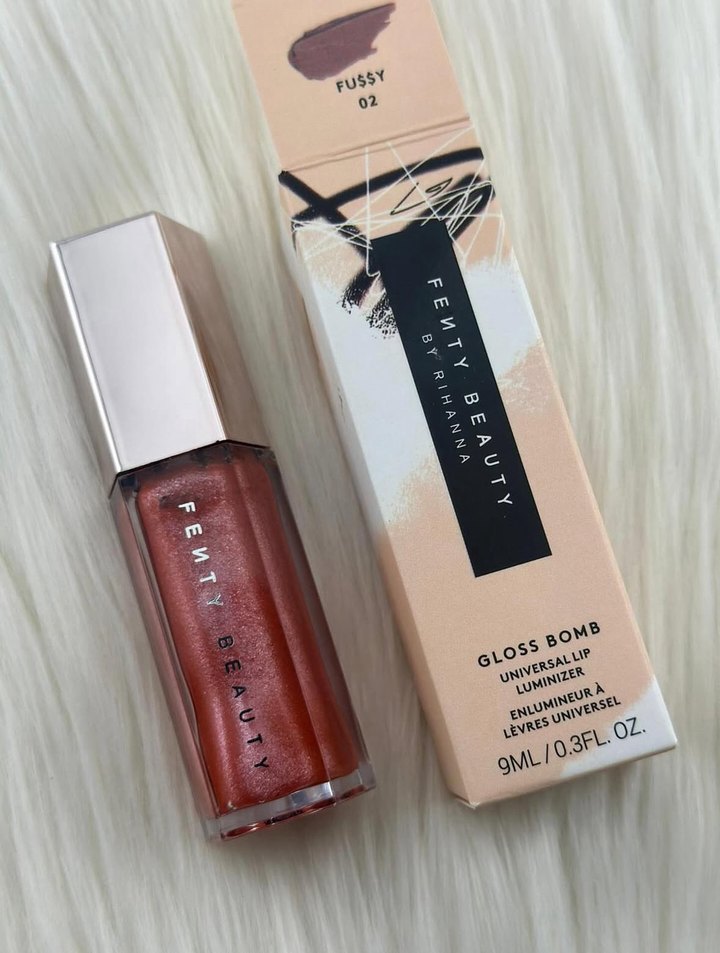 Fenty Beauty Gloss Bomb, Fussy renkli, parlak bej ruj. 9ml hacminde, evrensel parlaklık sağlayan dudak parlatıcısı.