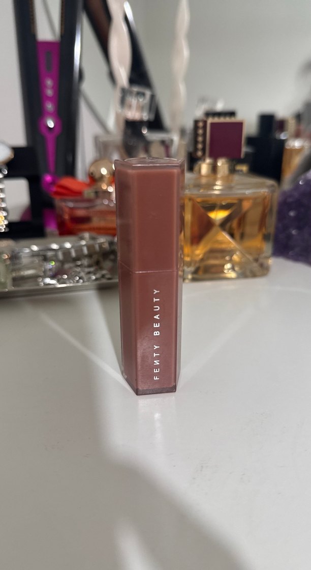 Fenty Beauty'nin koyu bej tonunda dudak parlatıcısı, dudaklara parlak ve pürüzsüz bir görünüm sağlar. Şık ambalajıyla dikkat çeker.
