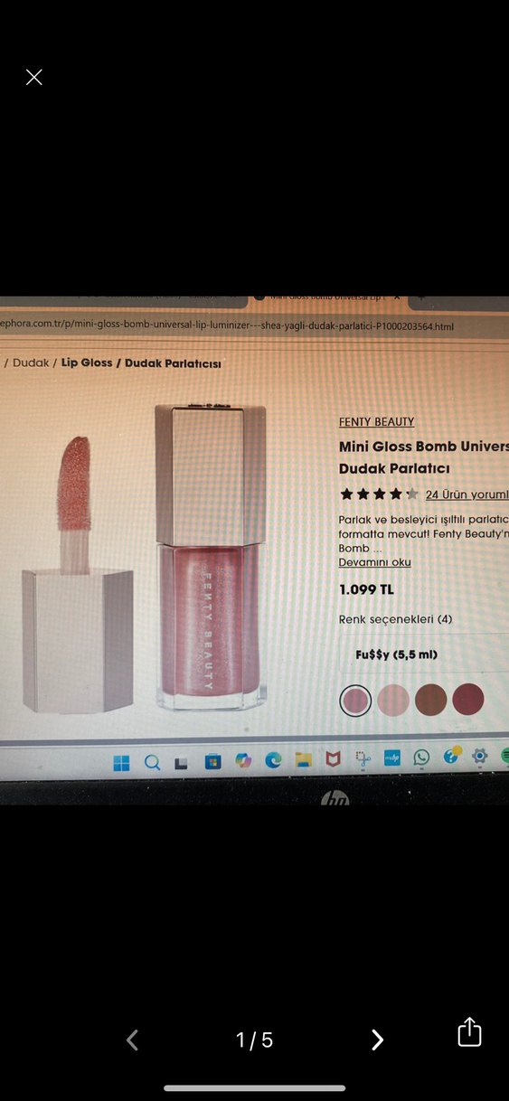 Fenty Beauty Mini Gloss Bomb, 5.5 ml boyutunda, parlak ve besleyici özellikte açık bej dudak parlatıcısıdır. Yalnızca deneme amaçlı kullandım
