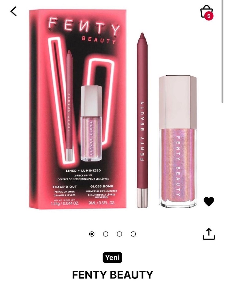 Fenty Beauty dudak kalemi ve ışıltılı parlatıcıdan oluşan pembe tonlarda set. Dudakları belirgin ve parlak gösterir. ✨ sadece gloss