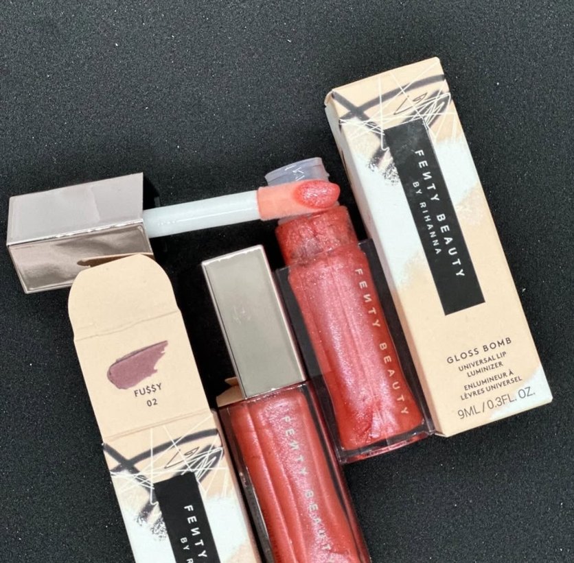 Fenty Beauty'nin açık pembe tonunda, parlak ve pürüzsüz bitişli dudak parlatıcısı. 9ml tüpte, Fussy 02 rengiyle.