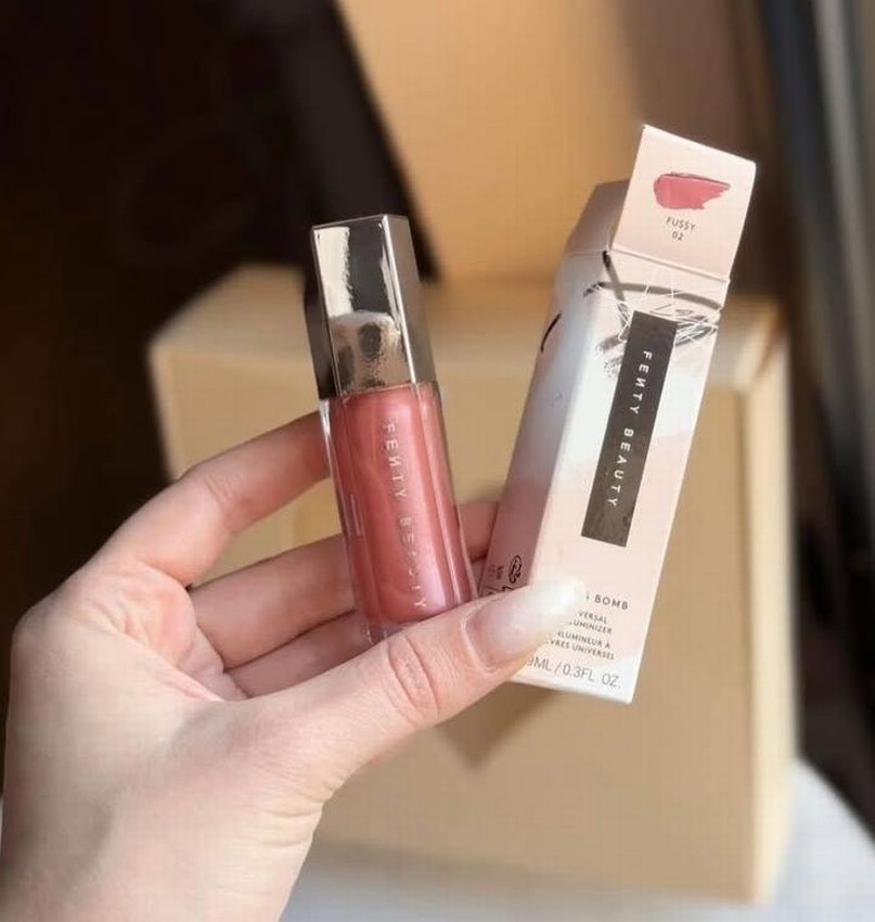 Fenty Beauty dudak parlatıcısı, pastel pembe tonunda, doğal görünümlü parlak ve pürüzsüz bir bitiş sağlar.