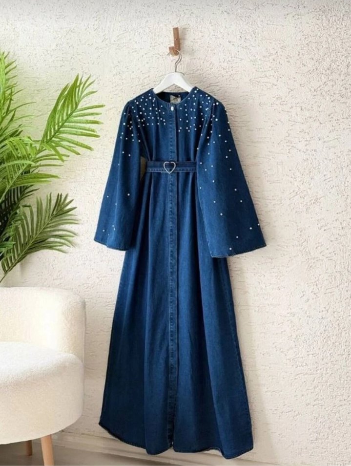Beden36/38 Ürün boy 140 cm Rengi koyu mavi İnci ve taşları çakma detaylıdır Önden düğmelidir Emziren anneler rahatlıkla tercih edebilir Seyyar kuşaklıdır Dilerseniz trenç olarakta kullanabilirsiniz