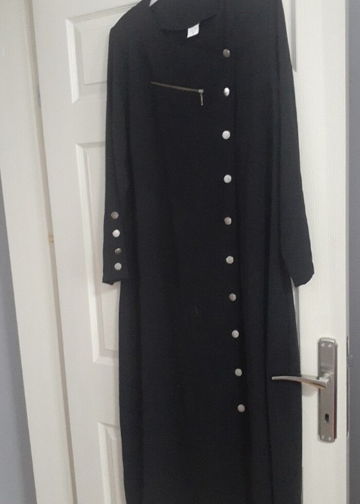 44 bedenede uyar ölçüleri yazdım ..Omuzdan aşşa boyu 135cm kol altı 52 cm ama önü düğme li olduğu için istediniz gibi ayar yapıp dikebilirsiniz.. ben düğme deliklerinin yanına dikiş attmıştım düğmeler çıkıyo diye birde kol düğmesi eksik 1 tane birde önde bi leke var uzun zamandır giymediğim icin bilmiyorumçıkarmı leke çıkarıcıylea yıkqnması gerek.. fiyat sondur..
