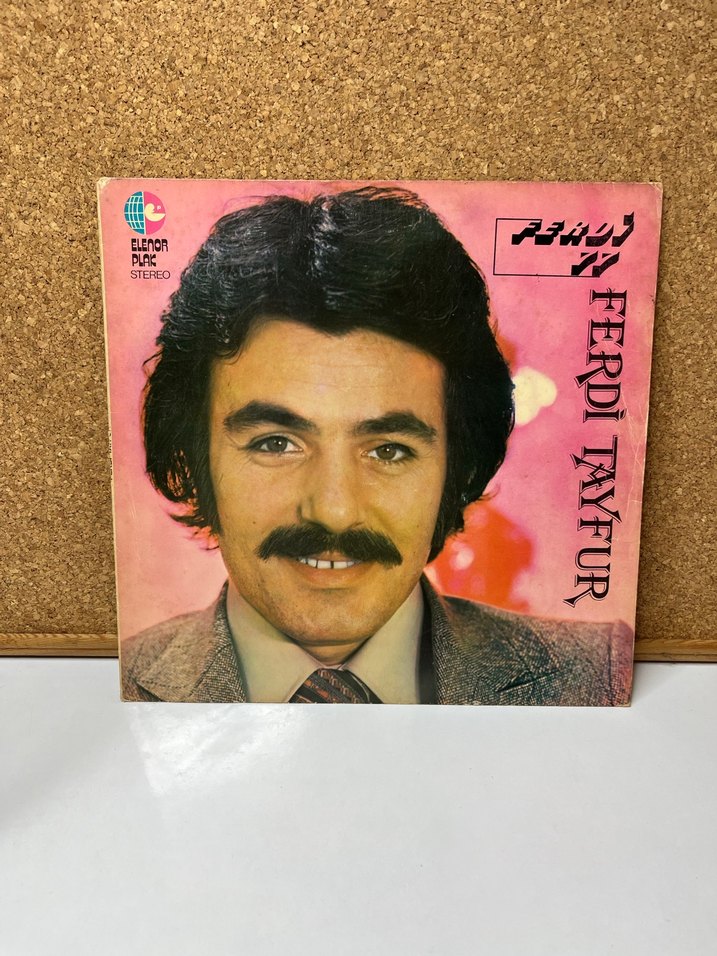 Kapak, plak 7,5-8 kondisyonda. Dönem baskı. Ferdi Tayfur'un yakın çekim portresi ve pembe arka planlı vinyl plak. Stereo ses kalitesi içerir.