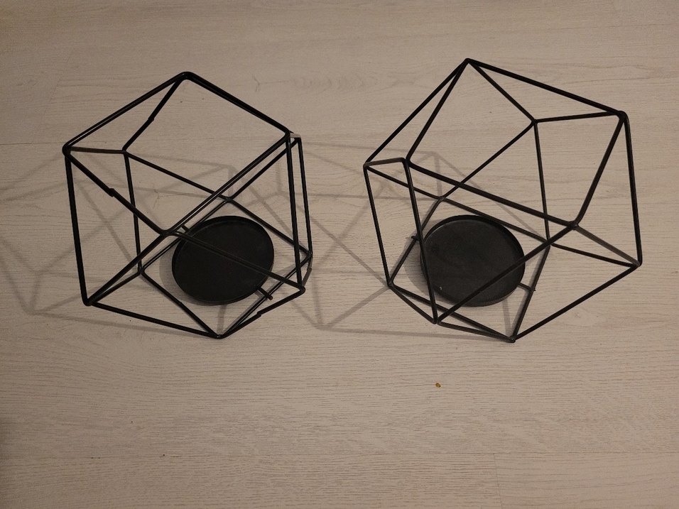 İki adet ferforje geometrik kafes mumluk