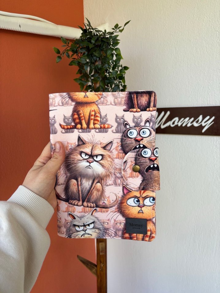 Fermuar Bölmeli Kedi Desenli Kitap Kılıfı