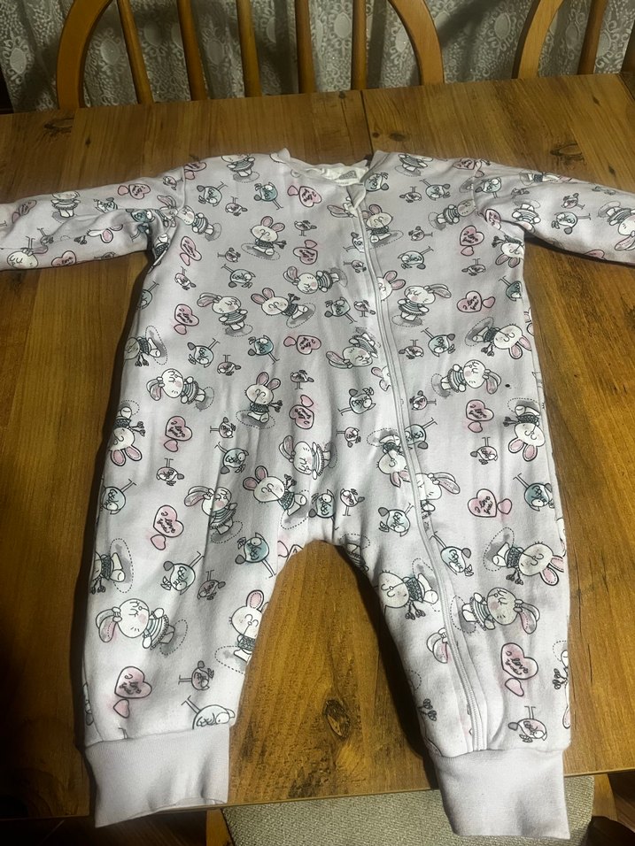 Lila renkli, fermuarlı ve baskılı desenli bebek tulumu. Yumuşak kumaşıyla bebeğiniz için rahatlık sağlar. Hafif tülerme var onun dışında sorunsuz