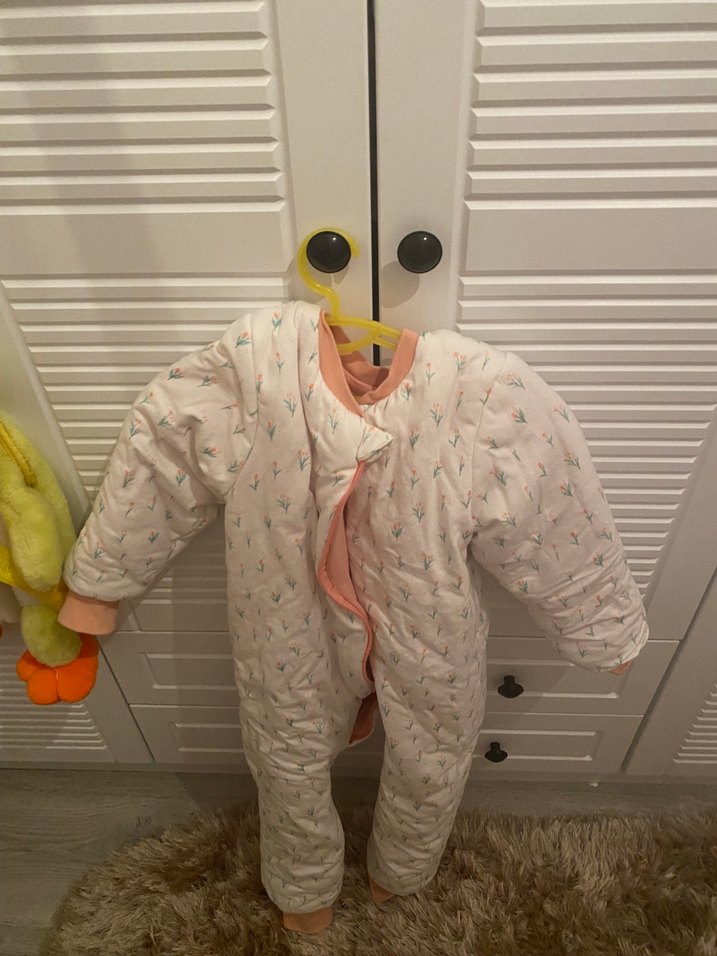 Pastel beyaz renkte, fermuarlı bebek kız tulumu, soğuk havalar için sıcaklık ve konfor sağlar. ❄️