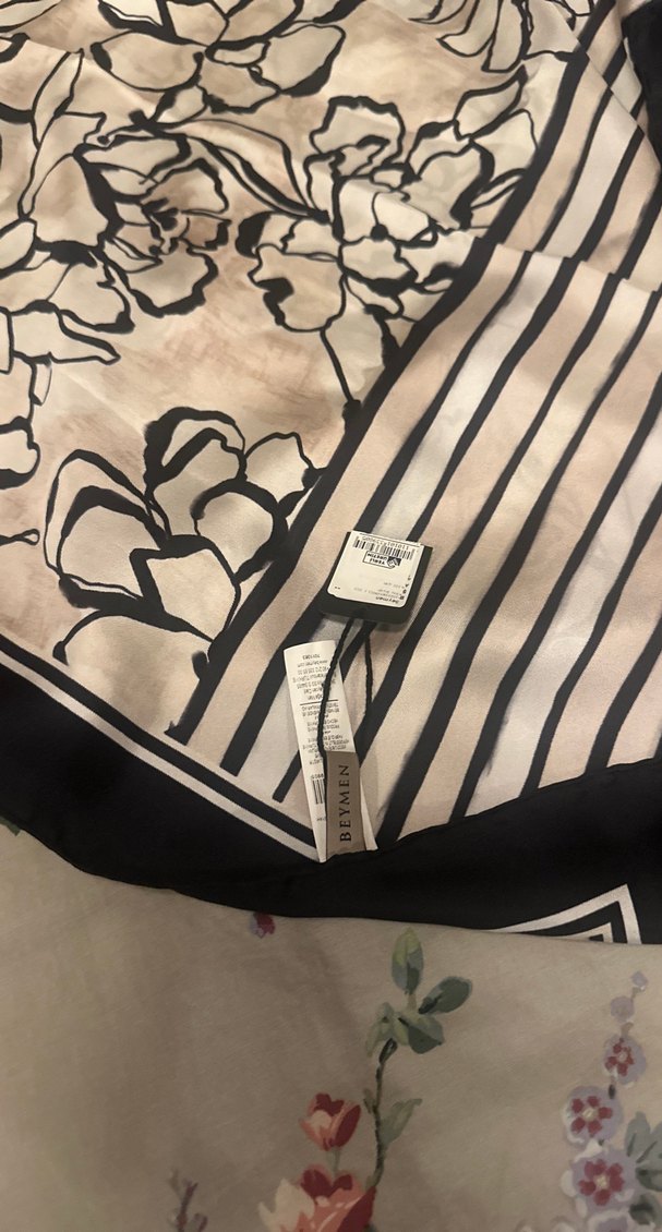 Bej renkli, koyu çiçek ve çizgili şal hediye gelmişti hiç kullanılmadı