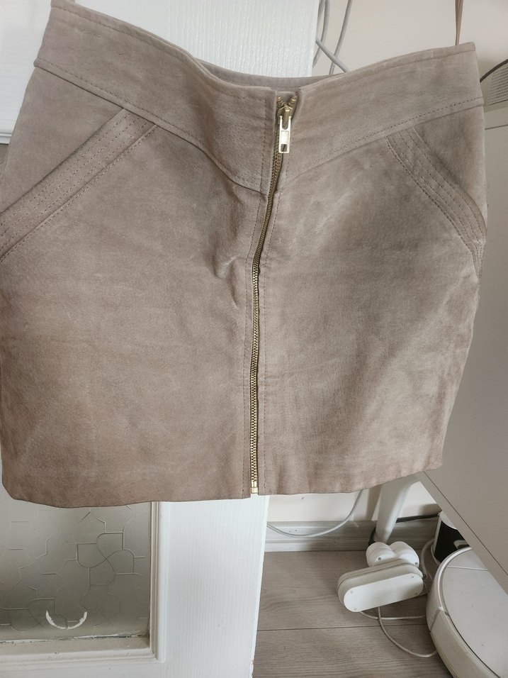 Fermuarlı Bej Süet Mini Etek