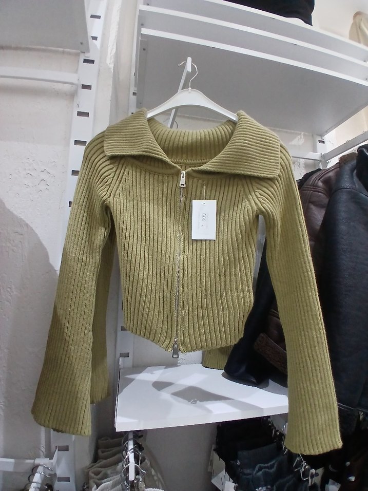 Fermuarlı Bej Triko Kadın Kazak