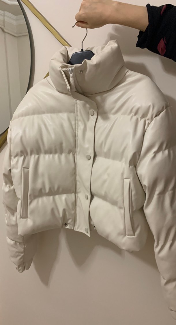 Yüksek yakalı, deri, beyaz midi kışlık mont. uzun kollu, rahat sokak stiline uygun. ❄️ normalde S beden giyiyorum ama oversize dursun diye L beden aldım gayet iyi durumda herhangi bir defosu yoktur.