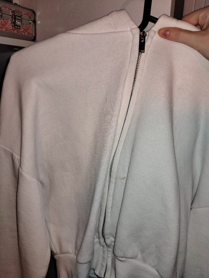 Fermuarlı, uzun kollu ve bisiklet yaka beyaz sweatshirt, yumuşak ve sıcak fleece kumaştan üretilmiştir. Orta boy kesimi ve dar kalıbı ile rahat bir kullanım sunar. s m olan alsın crop şeklinde