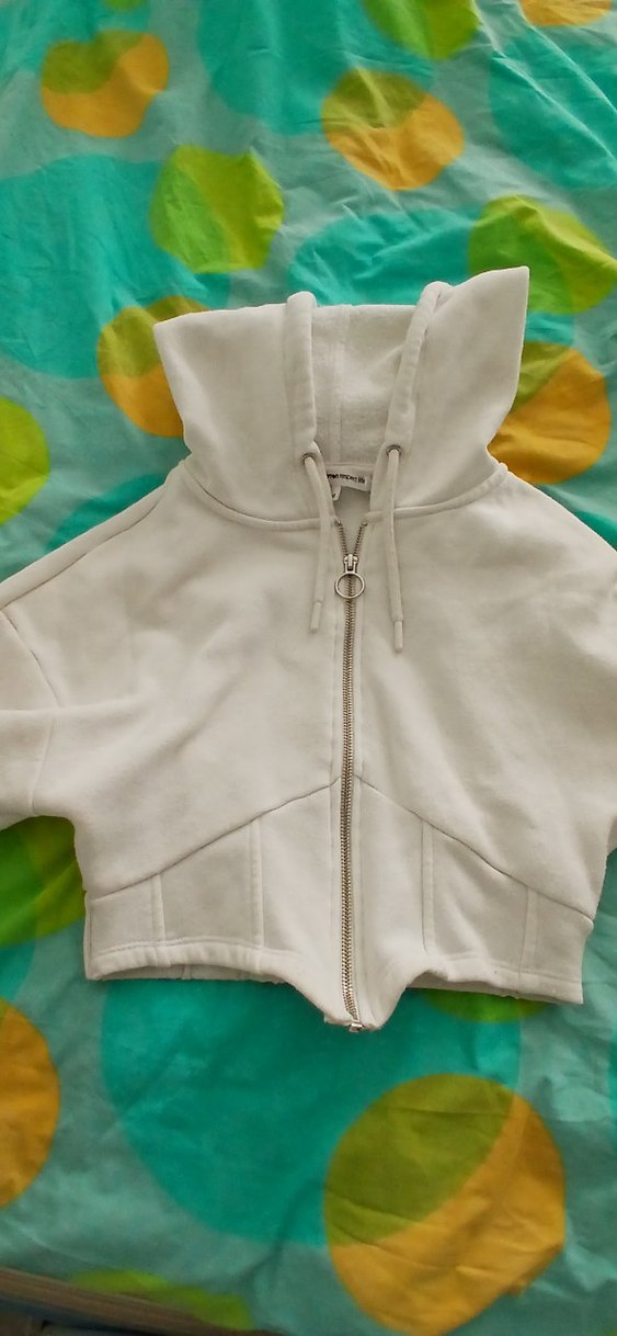 Fermuarlı Beyaz Kapüşonlu korse detay Kadın hırka