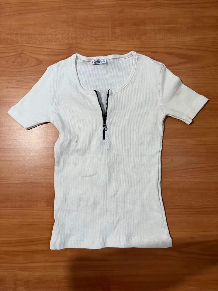 Fermuarlı Beyaz Kısa Kollu Kadın Tişört