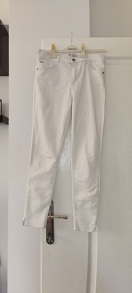 fermuarlı beyaz midi uzunluğunda, regular fit kot. desensiz ve günlük kullanıma uygun.likralı