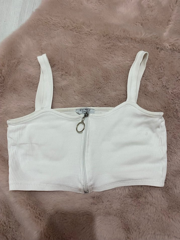 Önden fermuarlı beyaz S BEDEN crop