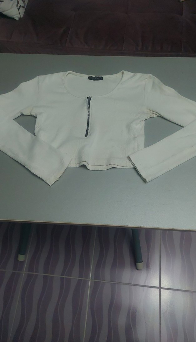 Pamuk kumaştan, uzun kollu, yuvarlak yaka ve önde fermuarlı beyaz tişörtü. Günlük rahat kullanıma uygundur.