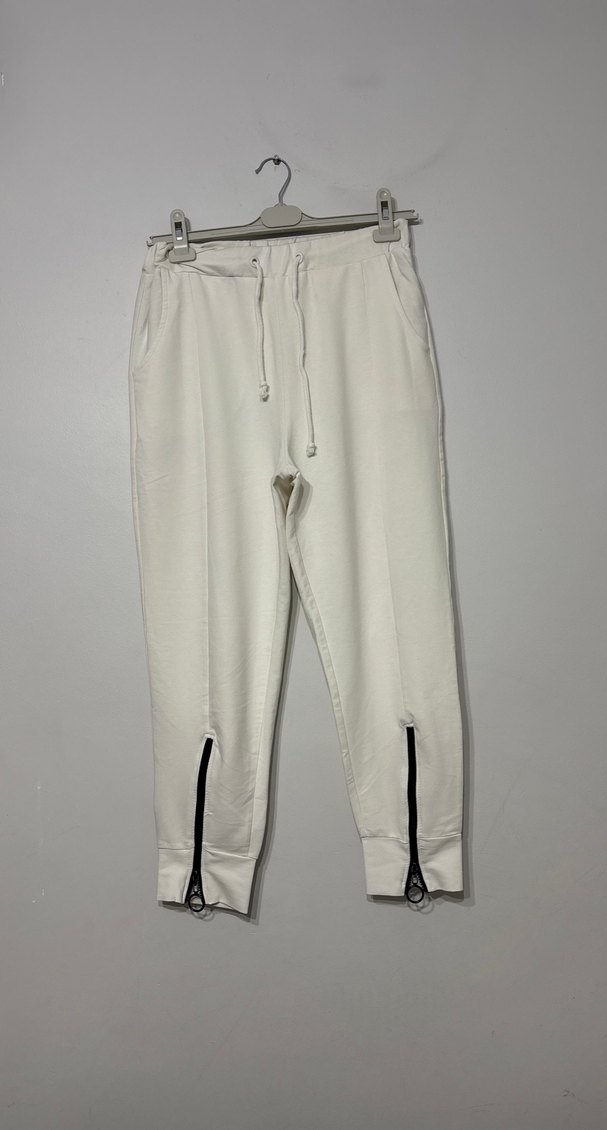 Yumuşak ve sıcak kumaştan, fermuarlı paçalı, bol kesim kadın eşofman. Midi boyu ve rahat kesimiyle günlük şıklık sunar. ♀️