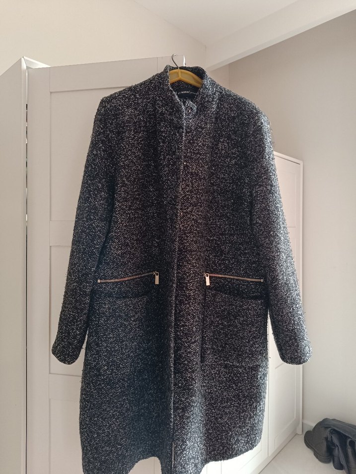 Fermuarlı Cepli Siyah-Gri Kaban