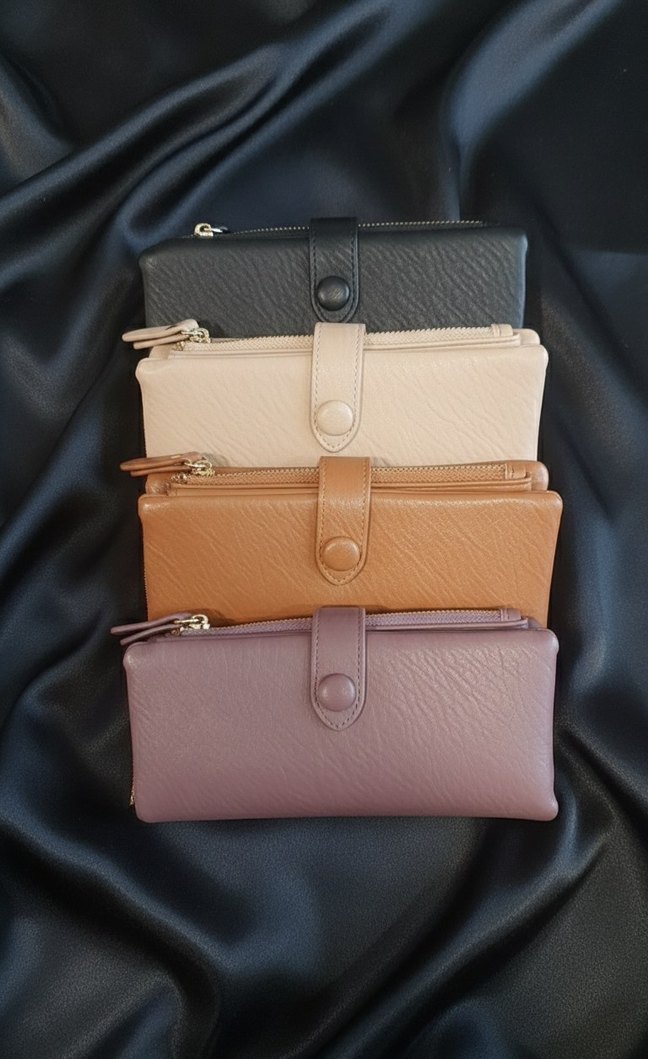 Fermuarlı ve çıtçıtlı kapamalı deri kadın cüzdanı, sade ve çağdaş tasarıma sahiptir. Günlük kullanıma uygundur. Mağazamızın ürünüdür. İthal Deri yumuşacık harika bir dokusu var. Etiketli ve yeni özel ambalajiyla gönderim sağlanacaktır.