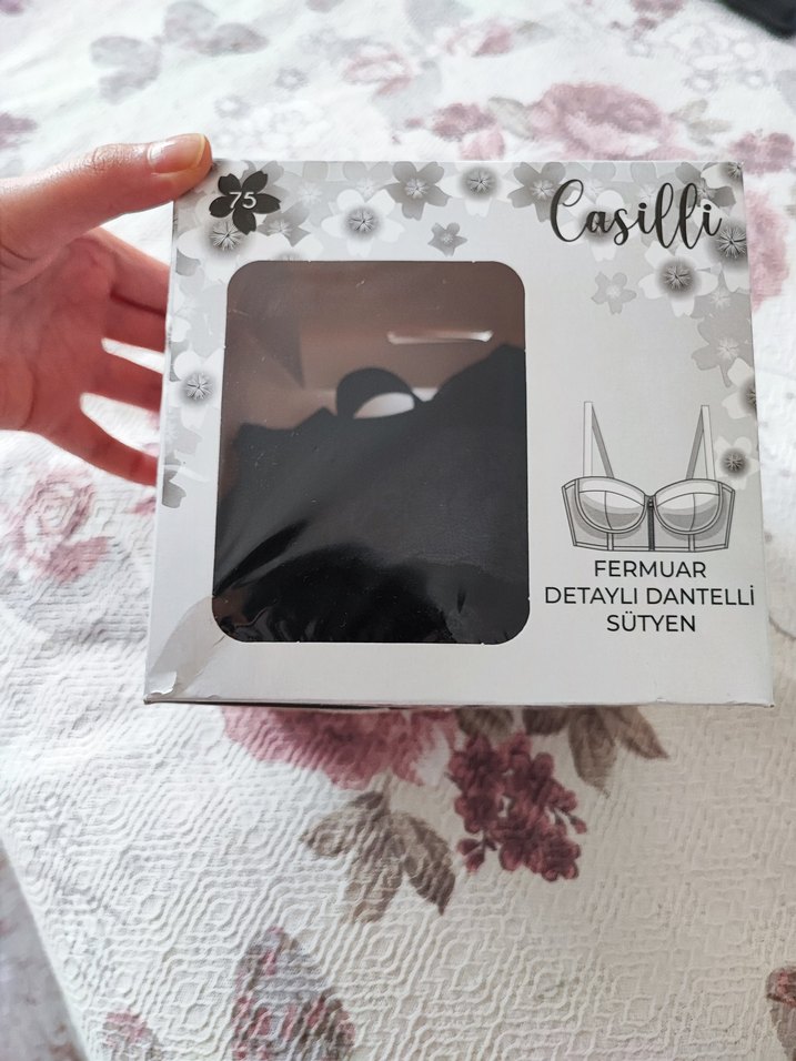 Fermuarlı ve detaylı dantelli, siyah mini uzunlukta, baskılı desenli rahat goth tarzı sütyen, beden 75. yeni zaten kutusu bile var çok şık ve tarz bı ürün