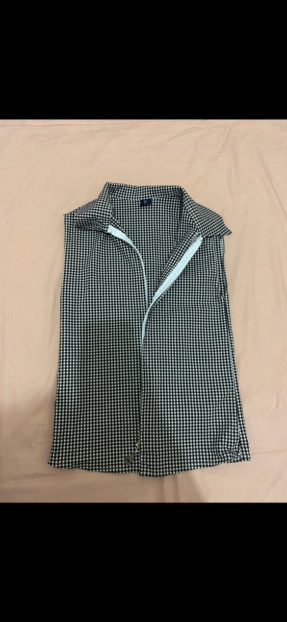Fermuarlı Ekose Desenli Kolsuz Gömlek