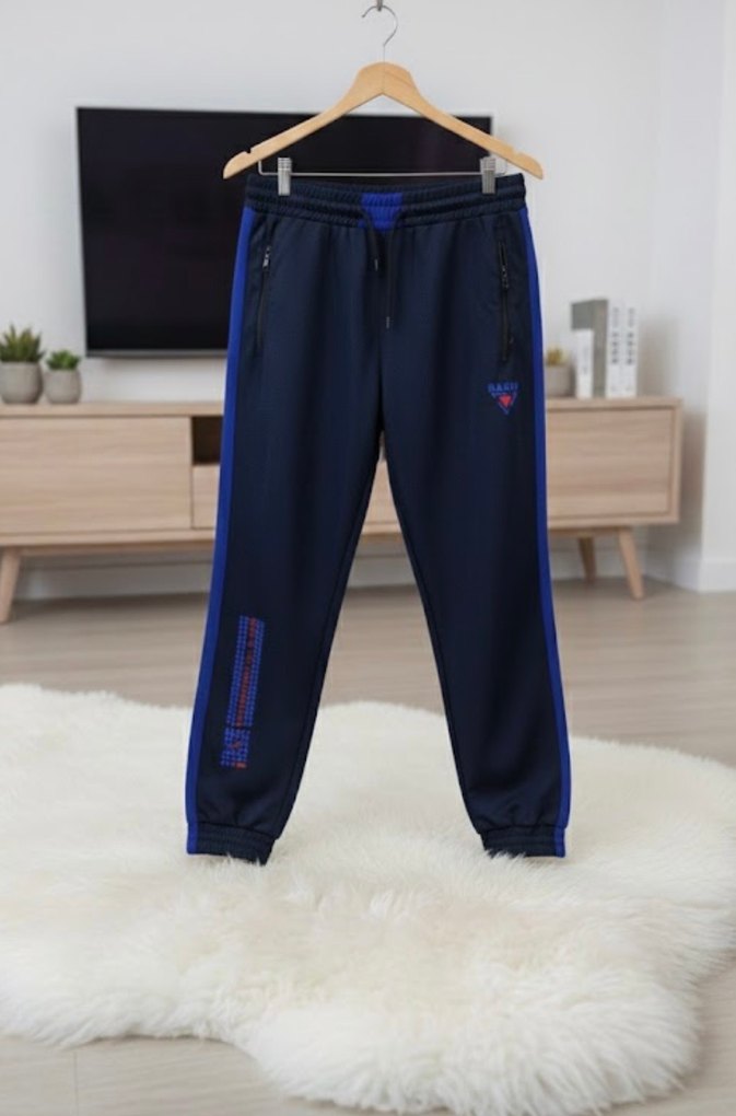 Fermuarlı cepleri ve dar kesimiyle koyu mavi renk erkek çocuk eşofman altı, sokak modasına uygun tarz sunar. ️