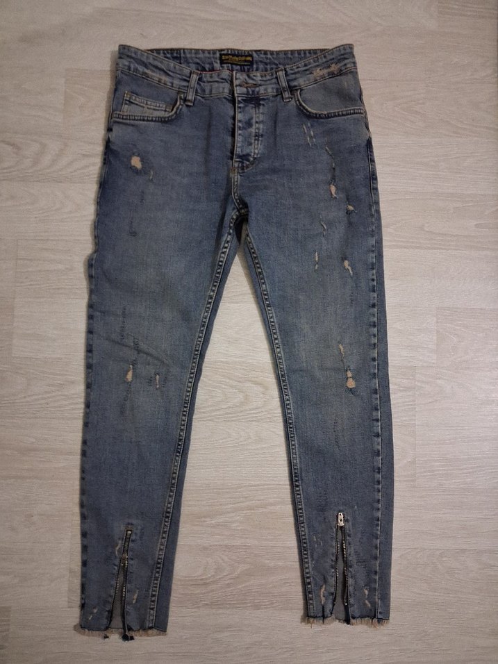 Fermuarlı Erkek Mavi Denim Pantolon