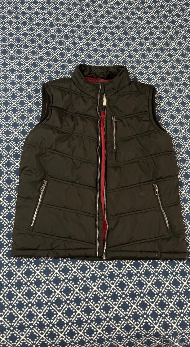 Fermuarlı cepleri ve yüksek yakası olan, koyu renk sentetik kumaştan yapılmış, erkeklere özel dar kesim spor yelek. Günlük kullanım için uygun. Eşime kış sonu aldık şimdi dar geldiğini söyleyip giymedi