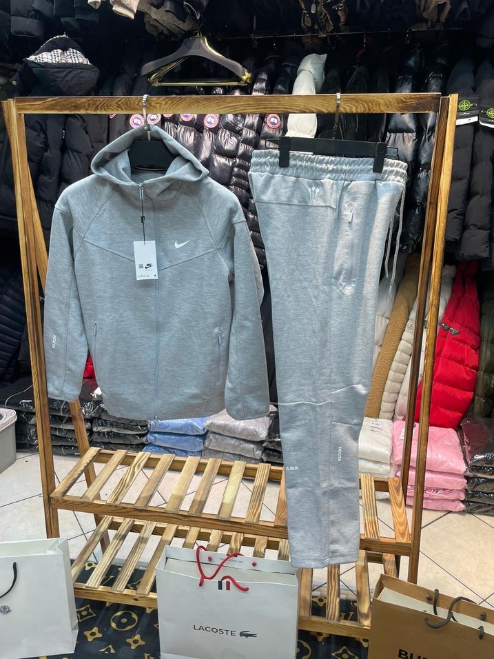 Gri renkli, bol kesim ve fermuarlı eşofman takımı. Yumuşak kumaştan, kapüşonlu üst ve uyumlu pantolon içerir. Günlük rahat kullanım için uygundur.