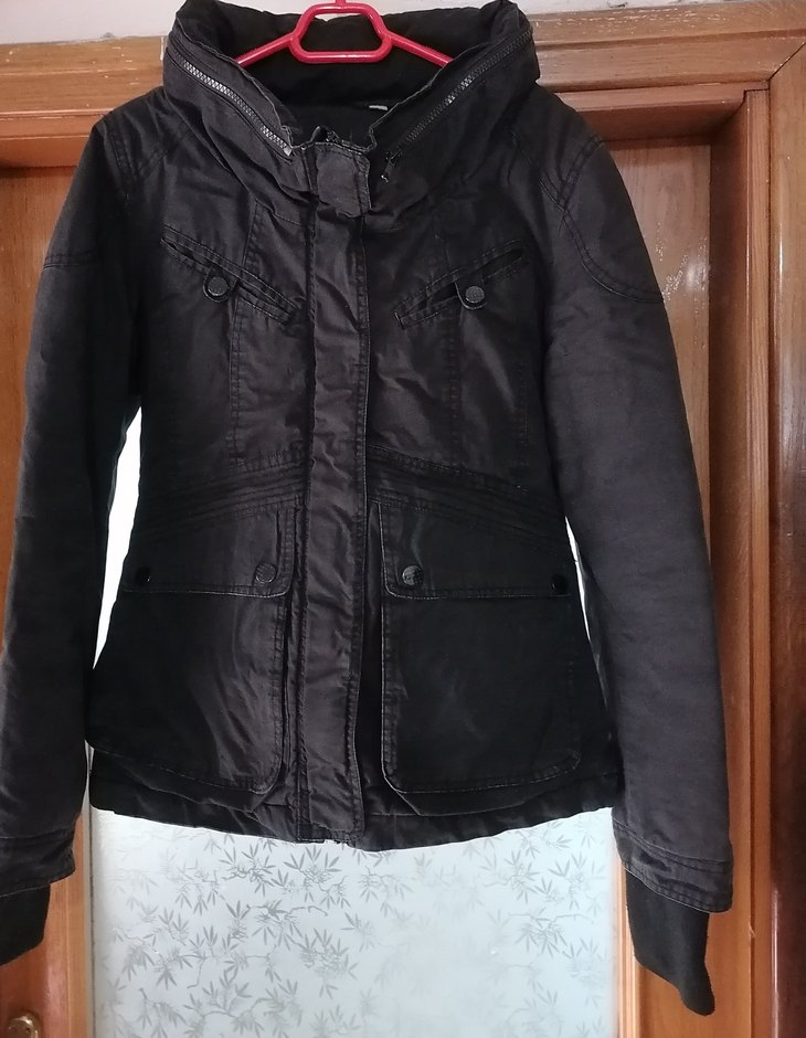 Fermuarlı icerisinde kapşonlu detaylara sahip, siyah normal boy ve dar kesim kadın ceketi. Uzun kollu, geniş yaka ile sokak stiline uygun ve günlük kullanıma ideal.