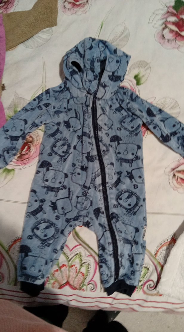 Gri renkli, fermuarlı bebek erkek tulumu, yumuşak ve sıcak kumaştan, kapüşonlu ve baskılı desenlidir. Sokak stili rahatlığı sağlar. ❄️