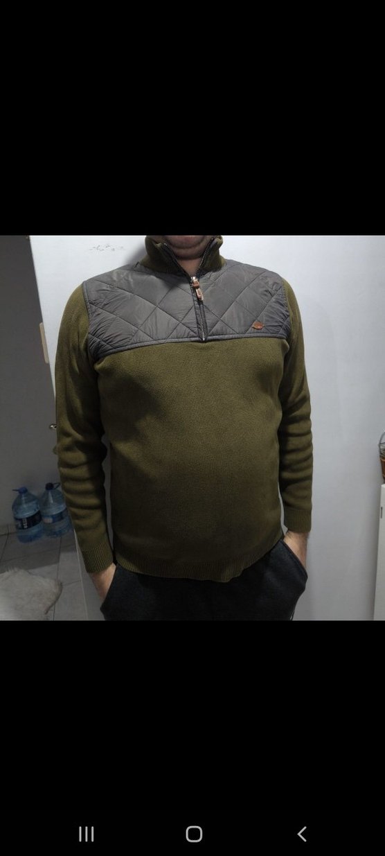 Erkekler için fermuarlı, boğazlı ve uzun kollu, gri renkli yumuşak ve sıcak kumaştan yapılmış, günlük rahat sokak stiline uygun bir kazak.