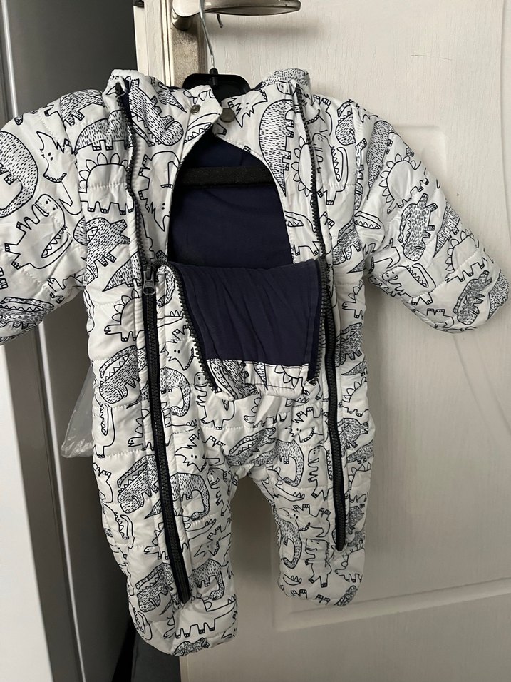 Fermuarlı ön kısmı ve desenli gri renkte, hafif bir kirli yeri var yıkamadım yıkanırsa çıkar muhtemelen ,